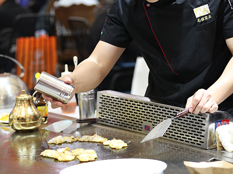 将铁板加热至适当温度。(志铭铁板烧可选燃气加热、电热管和电磁盘三种加热方式)