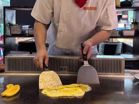 餐厅环境:店面采用简洁大气的工业风装修,环境舒适。餐厅为敞开式设计,顾客围坐在铁板周边,可近距离观看厨师烹饪,具有强烈的互动性和氛围感。